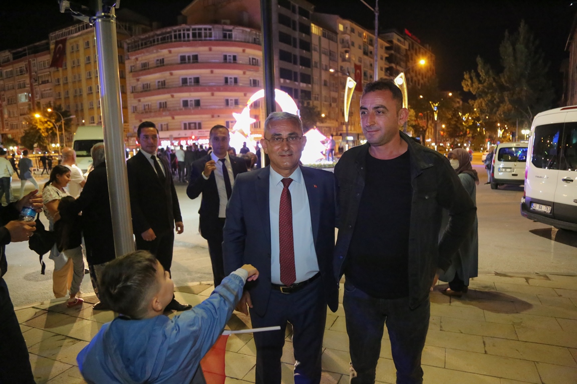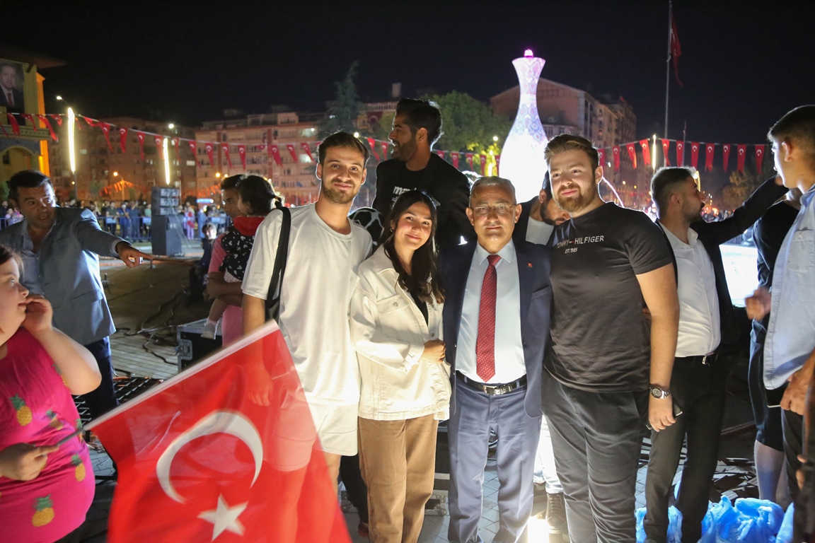 30 Ağustos Zafer Bayramı coşkusunu hemşehrilerimizle birlikte Zafer Meydanı’nda marşlar, ışık ve lazer ile havai fişek gösterisi eşliğinde yaşadık. Hemşehrilerimiz Belediye Başkanı Prof. Dr. Alim Işık ile Vazo önünde Zafer Bayramı hatıra fotoğrafı çektirdi. Binlerce hemşehrimizle Fener Alayı sonrasında Zafer Meydanı’nda bir araya geldik. 30 Ağustos Zafer Bayramı kutlama programı kapsamında Zafer Meydanı’nda ışık, lazer ve havai fişek gösterisi, binlerce hemşehrimizin katılımı ile gerçekleşti. Milli marşların da eşlik ettiği gösterilerde, hemşehrilerimiz Belediye Başkanı Prof. Dr. Alim Işık ile birlikte Kütahya’nın simgesi Vazo ve medyanda yer alan Ay Yıldız önünde hatıra fotoğrafı çektirdiler.