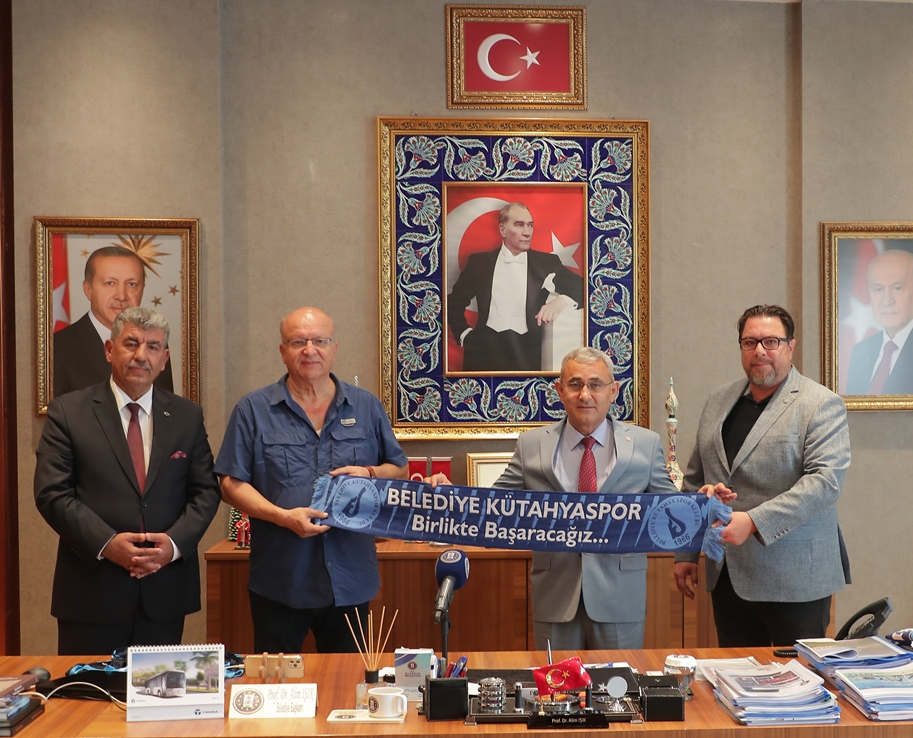 Avrupa Kütahyalılar Federasyonu Genel Başkanı Adil Emsen, Belediye Kütahyaspor’a başarılar dilemek için Kütahya Belediye Başkanı Prof. Dr. Alim Işık’ı makamında ziyaret etti. Yapılan ziyarette konuşan Belediye Başkanı Prof. Dr. Alim Işık, Belediye Kütahyaspor’un 2. Lig için çalışmalarını sürdürdüğünü ifade ederek, “Avrupa Kütahyalılar Federasyonu Genel Başkanı Adil Emsen, 2. Lig yolunda şampiyonluk mücadelesi veren Belediye Kütahyaspor’umuza başarılar dilemek adına, Avrupa’daki hemşehrilerimizi temsilen belediyemize ziyarete geldiler. Ziyaretleri için teşekkür ediyorum. Gösterdikleri maddi ve manevi destekler içinde hemşehrilerim adına şahsına ayrıca teşekkür ediyorum. Allah nasip ederse bu yıl yoğun bir çalışma sonucunda takımımızı 2. Lige çıkartmak için canla başla çalışmaya devam edeceğiz. Bu anlamda ilimizden, ülkemizden ve ilimiz adına yurt dışında bizleri temsil eden hemşehrilerimizden başta dua olmak üzere maddi ve manevi desteklerini bekliyoruz. Bu takım Kütahya’nın markası. İnşallah hak ettiği yere bu mücadele sonucunda gelecek. Bugünün anısına başkanımıza Belediye Kütahyaspor forması, atkısı ve şampiyonluk bayrağımızı hediye edeceğiz” dedi.