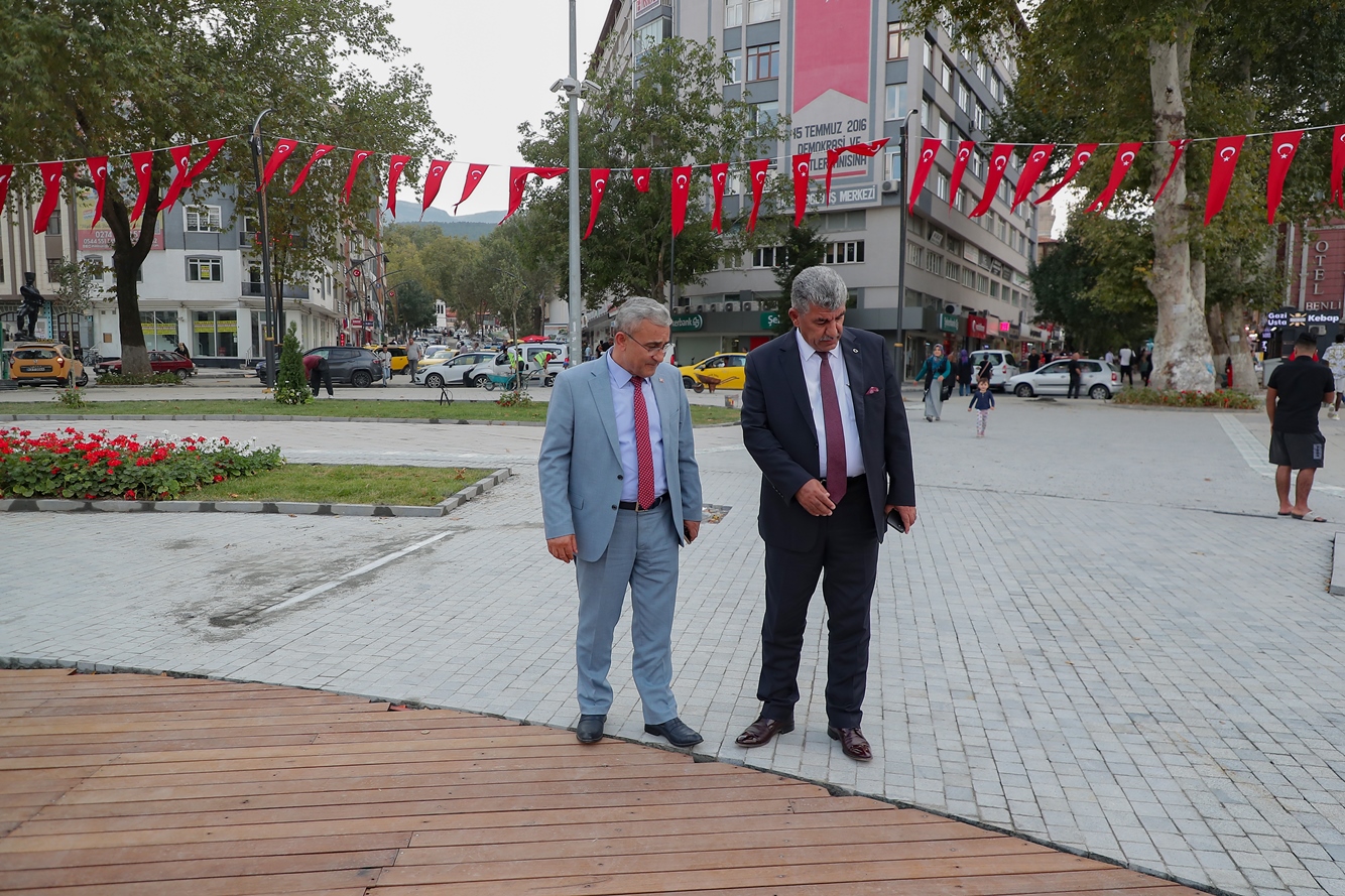 Belediye Başkanı Prof. Dr. Alim Işık, 30 Ağustos Zafer Bayramı akşamında binlerce Kütahyalının katılımıyla fiili açılışı yapılan Zafer Meydanı’nda incelemelerde bulundu. İki buçuk ay gibi kısa sürede yapımı tamamlanan Zafer Meydanı Kütahyalı hemşehrilerimizin beğenisini kazanmaya devam ediyor. Meydanda devam eden düzenleme çalışmalarını Vali Ali Çelik ile birlikte inceleyen Belediye Başkanı Prof. Dr. Alim Işık’a, Belediye Başkan Yardımcıları Abdullah Damcı, Ömer Köse, Murat Arık, Ertuğrul Cevahir ve İl Genel Meclis Başkanı Musa Yılmaz eşlik etti.