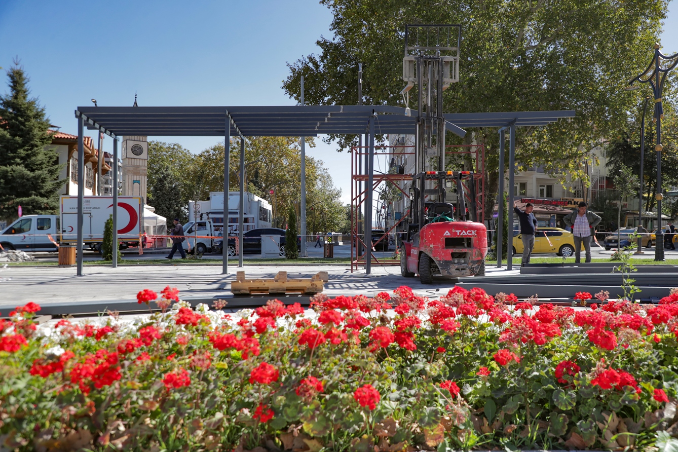 Projede yer alan oturma grupları ile birlikte gölgeliklerin montaj çalışmaları kısa süre içinde tamamlanması ile birlikte, Zafer Meydanı şehrin yeni cazibe merkezi olacak.