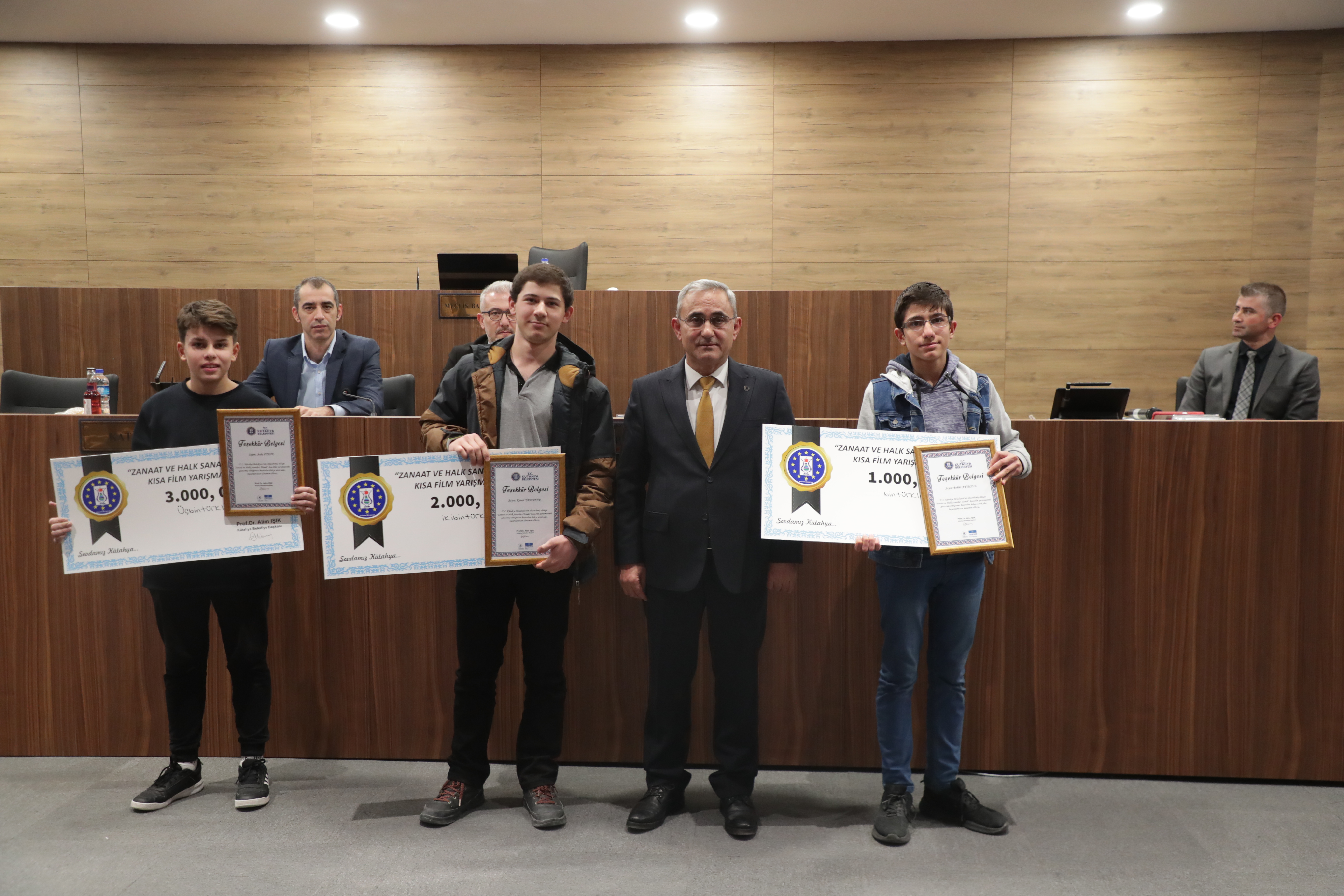Ödüllerini Kütahya Belediye Başkanı Prof. Dr. Alim Işık’tan alan öğrenciler tören sonrası günün anısına fotoğraf çektirdi.