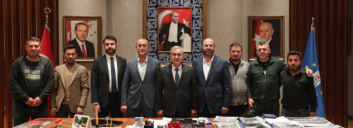 Kütahya Sebzeciler ve Pazaryerleri Esnaf Odası Başkanı Hakan Akdaş ve yönetim kurulu, Kütahya Belediye Başkanı Prof. Dr. Alim Işık’a nezaket ziyaretinde bulundu. Şehrimiz genelindeki semt pazaryerleri ve pazarcı esnafının sorun ve görüşlerinin dile getirildiği görüşmede, karşılıklı bilgi alışverişlerinde bulunuldu. Gerçekleştirilen ziyaretten oldukça memnun olduğunu dile getiren Başkan Işık, "Pazarcı esnafının sorunlarını çok iyi biliyoruz, şehrimize kazandıracağımız yeni semt pazarı için ortak görüş alışverişinde bulunarak karar verdik. Amacımız her geçen gün büyüyen şehrimizde uzun yıllar hizmet verecek modern bir yer kazandırmak. En kısa sürede inşaat aşamasına geçerek bu projeyi kısa sürede tamamlayacağız. Şehrimize hayırlı olsun” dedi.