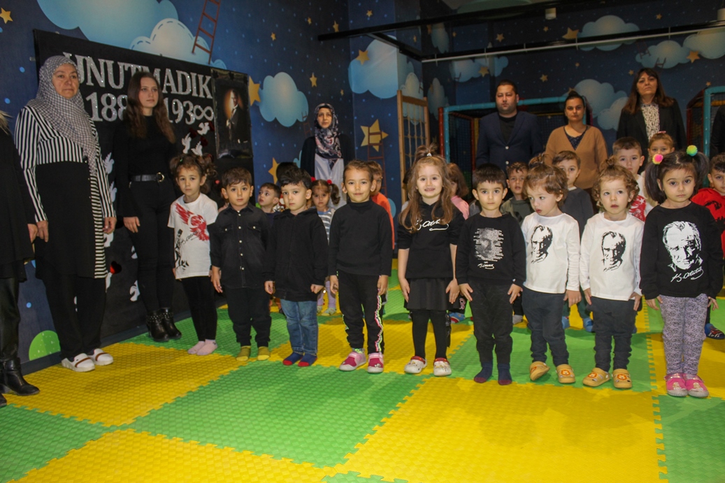 Kütahya Belediyesi Gündüz Çocuk Bakımevi öğrencileri, Gazi Mustafa Kemal Atatürk vefatının 84. yıl dönümünde öğretmenleri eşliğinde Ataları için özel anma köşesi hazırladı.Gazi Mustafa Kemal Atatürk vefatının 84. yıl dönümünde, 10 Kasım Atatürk’ü Anma Günü etkinlikleri kapsamında Kütahya Belediyesi Gündüz Çocuk Bakımevi öğrencileri, öğretmenleriyle birlikte hazırladıkları anma köşesiyle Ulu Önder’i andı. Yaslarını sembolize eden siyah renkli panoya “Unutmadık!” yazan minikler, Atatürk’e olan sevgi ve saygılarını gösterdi. Giydikleri Atatürk tişörtleriyle panonun önüne geçen öğrenciler, Kadın ve Aile Hizmetleri Müdürü Keziban Çolak ve öğretmenleriyle hatıra fotoğrafı çektirdi.