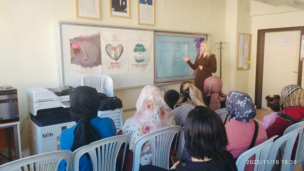 UMER, İstiklal Mahallesi’nde 12-15 yaş arası çocuklarımıza “Gençlik ve Madde Bağımlılığı” ve çocuklarımızın annelerine “Aile ve Madde Bağımlılığı’ eğitimi verdi.UMER geleceğimiz olan çocuklarımız ve gençlerimiz için mücadele etmeye devam ediyor. Geçtiğimiz dönem ortaokullarda başlatmış olduğu ‘Madde Bağımlılığı ve Bağımlılık’ eğitimlerine İstiklal mahallesinde bilinçlendirme çalışmalarına devam ederek çocuklarımızın ilk eğitimlerini aldıkları, ilk rol model ve öğretmenleri olan anne ve babalara ‘Aile ve Madde Bağımlılığı’ eğitimi ile uyuşturucu bağımlılığına karşı bilgilendirmeye devam ediyor. Eğitim amacımız, çocuklarımızın bilinçli ve duyarlı bir aile ortamında yetişmesi ve sağlıklı, bilinçli ve bağımsız bireylerden oluşan toplum oluşturmaktır.