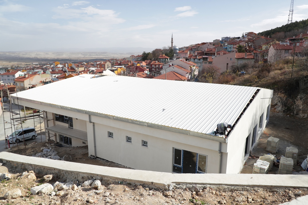 Belediye Başkanımız Prof. Dr. Alim Işık, yapımı son aşamaya gelen Hamidiye Mahallesi Kültür Evi’nde incelemelerde bulundu. Şehrimizdeki mahallelerimizin ihtiyaçları doğrultusunda yatırımlarını sürdüren Kütahya Belediyemizin, Hamidiye Mahallesi’nde yapımına devam ettiği Kültür Evi’nde sona gelindi. Kültür Evi’ndeki çalışmaları yerinde inceleyen Belediye Başkanımız Prof. Dr. Alim Işık, çatı montajının tamamlandığını ve sosyal donatı alanlarındaki imalatların son aşamaya geldiğini ifade etti. Kültür Evi içerisinde muhtarlık ofisi, düğün salonu, mahalle fırını gibi hemşehrilerimizin ihtiyaçlarına cevap verecek alanlar yer alacak.