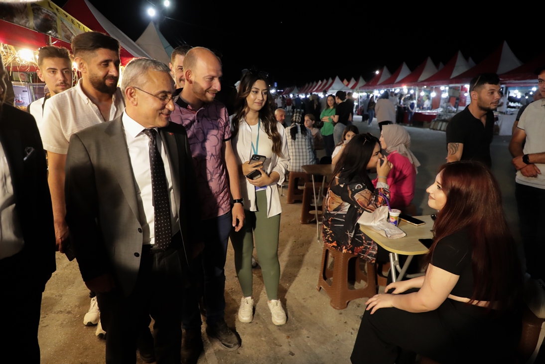 Ali Kınık’ı dinleyen Belediye Başkanımız Prof. Dr. Alim Işık, konser öncesi fuar alanında bulunan stantları gezerek esnaflara hayırlı işler diledi. Festivale gelen hemşehrilerimizle sohbet eden Başkanımız Işık, iyi eğlenceler dilediği vatandaşlarımızla bol bol hatıra fotoğrafı çektirdi.