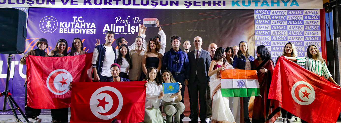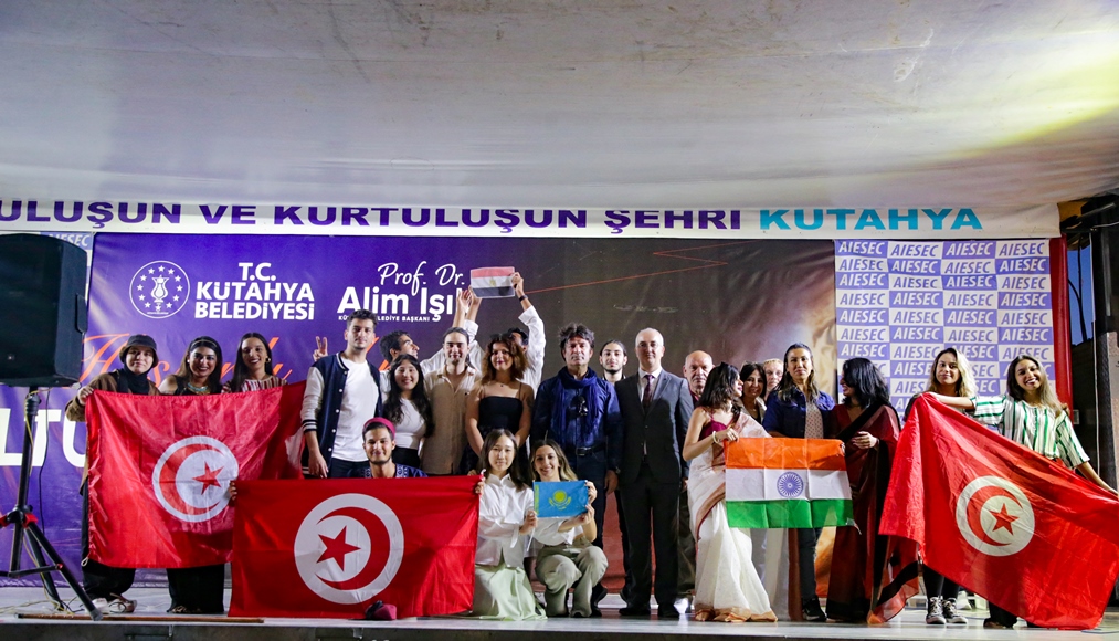 Kütahya Belediyesi Kültür ve Sosyal İşler Müdürlüğümüzün organizasyonuyla belediye bahçesinde düzenlenen AIESEC Kültürler Panayırı, farklı renkleri bir araya getirdi. Kütahya Belediyesi Kültür ve Sosyal İşler Müdürlüğümüzün organize ettiği ve dünyanın farklı kültürlerinden öğrencilerin bir araya geldiği AIESEC Kültürler Panayırı, Belediye Hizmet Binamızın bahçesinde gerçekleştirildi. Farklılıkların bir araya geldiği renkli etkinlikte öğrenciler, kültürler arası etkileşimi deneyimledi ve doyasıya eğlendi. Mısır, Hindistan, Türkmenistan ve Kazakistan gibi ülkelerin kendilerine has danslarını sergileyen öğrenciler, yine kendi ülkelerinin yemeklerini katılımcılara ikram ettiler.