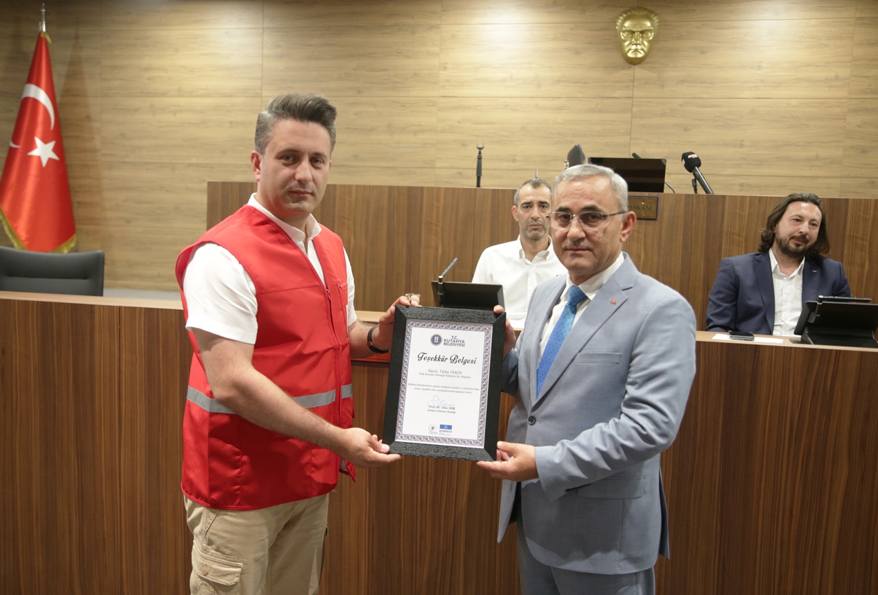 Belediye Başkanımız Prof. Dr. Alim Işık başkanlığında toplanan Kütahya Belediyesi 5. Dönem 7. Olağan Meclis oturumunda, bölgedeki üstün ve özverili çalışmalarından dolayı Türk Kızılay Derneği Kütahya Şube Başkanı Talha Tekin’e teşekkür belgesi verildi.