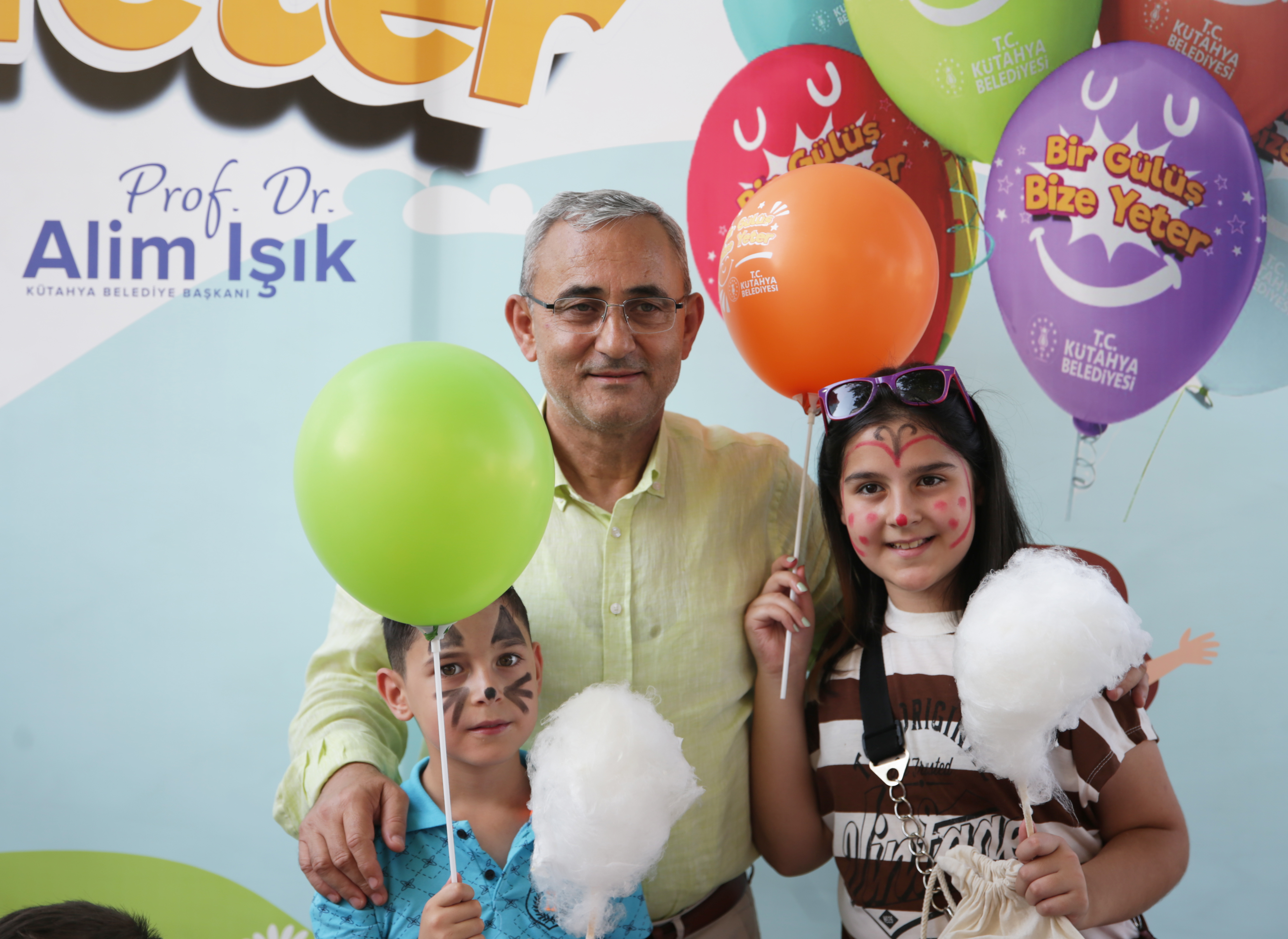 Kütahya Belediyemizin organizasyonuyla çocuklarımız için ücretsiz düzenlenen ve bir ay boyunca devam edecek olan “Bir Gülüş Bize Yeter” çocuk şenliğinin coşkusu Zafer Meydanı’na taştı. Etkinlik alanını ziyaret eden Belediye Başkanımız Prof. Dr. Alim Işık ve eşi Fatma Işık, çocuklarımızla vakit geçirerek ikramlarda bulundu. Uygulamaya koyduğu sosyal sorumluluk projeleri ile Türkiye’ye örnek olan ve 7’den 70’e gönüllere dokunmaya devam eden Kütahya Belediyemizin organizasyonuyla çocuklarımız için ücretsiz düzenlenen ve bir ay boyunca devam edecek olan “Bir Gülüş Bize Yeter” çocuk şenliği Zafer Meydanı’yla devam etti. Zafer Meydanı’nda kurulan etkinlik alanında çocuklarımız, yüz boyama, palyaço, maskot, pamuk şeker, patlamış mısır ve sürpriz hediyelerle doyasıya eğlencenin tadını çıkardı.