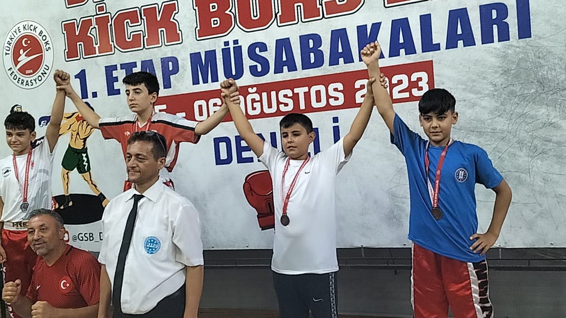 Denizli’de düzenlenen İller Arası Kick Boks Şampiyonası 1. Etap Müsabakaları’na 14 sporcuyla katılan Kütahya Belediyespor, 12 madalya kazanarak şehrimizi gururlandırdı. İller Arası Kick Boks Şampiyonası 1. Etap Müsabakaları, 4-6 Ağustos tarihleri arasında Denizli’de düzenlendi. 450’ye yakın sporcunun katıldığı müsabakalara 14 sporcuyla katılan Kütahya Belediyespor Kulübü sporcularımız 2 altın, 4 gümüş ve 6 bronz olmak üzere toplam 12 madalya, 5 sporcu ile katılan Kütahya Gençlik Merkezi Spor Kulübü 1 madalya kazanarak şehrimizi gururlandırdı. Şampiyonada Kütahya Belediyespor Kulübü antrenörü Fatma Çakır hakem olarak görev yaparken Ahmet Arabacı da antrenörlük yaptı.