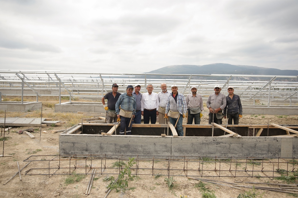 Yenilenebilir enerji projelerine önem veren Kütahya Belediyemiz, 2.5 megavatlık yeni Güneş Enerji Santraliyle (GES) yatırımlarına yenilerini ekliyor. Güneş Enerji Santrali için yapılan imalat çalışmalarını yerinde inceleyen Başkanımız Işık, “Belediyemizin elektrik tüketimiyle mahsuplaşarak yıllık 15 milyon lira civarında bir tasarrufun sağlanacağı sistemi çok yakında inşallah şehrimize kazandıracağız” dedi.Üretken belediyecilik anlayışıyla yenilenebilir enerji yatırımlarına önem veren Kütahya Belediyemiz, mevcut 750 kw kapasiteli Güneş Enerji Santraline ek olarak 2.5 megavatlık yeni Güneş Enerji Santrali kuruyor. Yıllık 15 milyon lira tasarruf sağlayacak tesis ile hem belediyemizin yıllık enerji maliyetleri azaltılacak hem de şehrimizin yıllık karbon salınımı önemli oranda düşürülerek çevreye katkı sağlanacak. Akkent Mahallesi Şehzadeler Parkı’nın arkasında bulunan eski çöp döküm sahasının üzerine inşa edilen GES projesi kapsamında 545 watt gücünde 5 bin 816 adet panelle 5 bin 730 tonluk karbon emisyonuna eşdeğer üretim yapılacak.