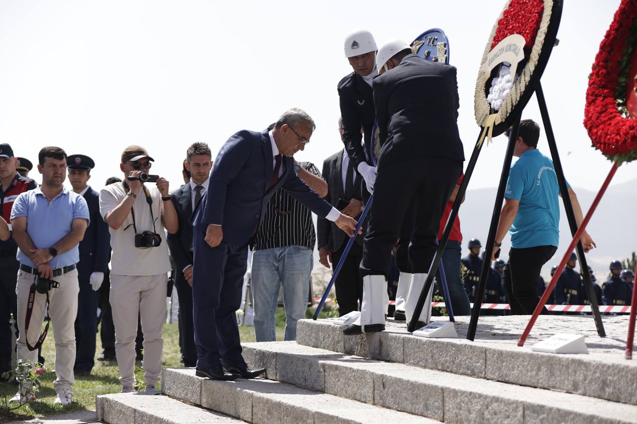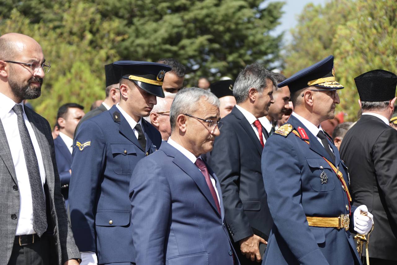 Çelenk sunumunun ardından tören alanına geçen Gençlik ve Spor Bakanı Dr. Osman Aşkın Bak, Kütahya Valisi Musa Işın, Kütahya Hava Er Eğitim ve Tugay Komutanı Hava Tuğgeneral Mustafa Baş ve Belediye Başkanımız Prof. Dr. Alim Işık, tören birliklerini denetleyerek vatandaşlarımızı selamladı. Saygı duruşunda bulunulması ve İstiklal Marşı’mızın okunmasının ardından Kur'an-ı Kerim tilaveti okundu ve tüm şehitlerimiz için dua edildi.