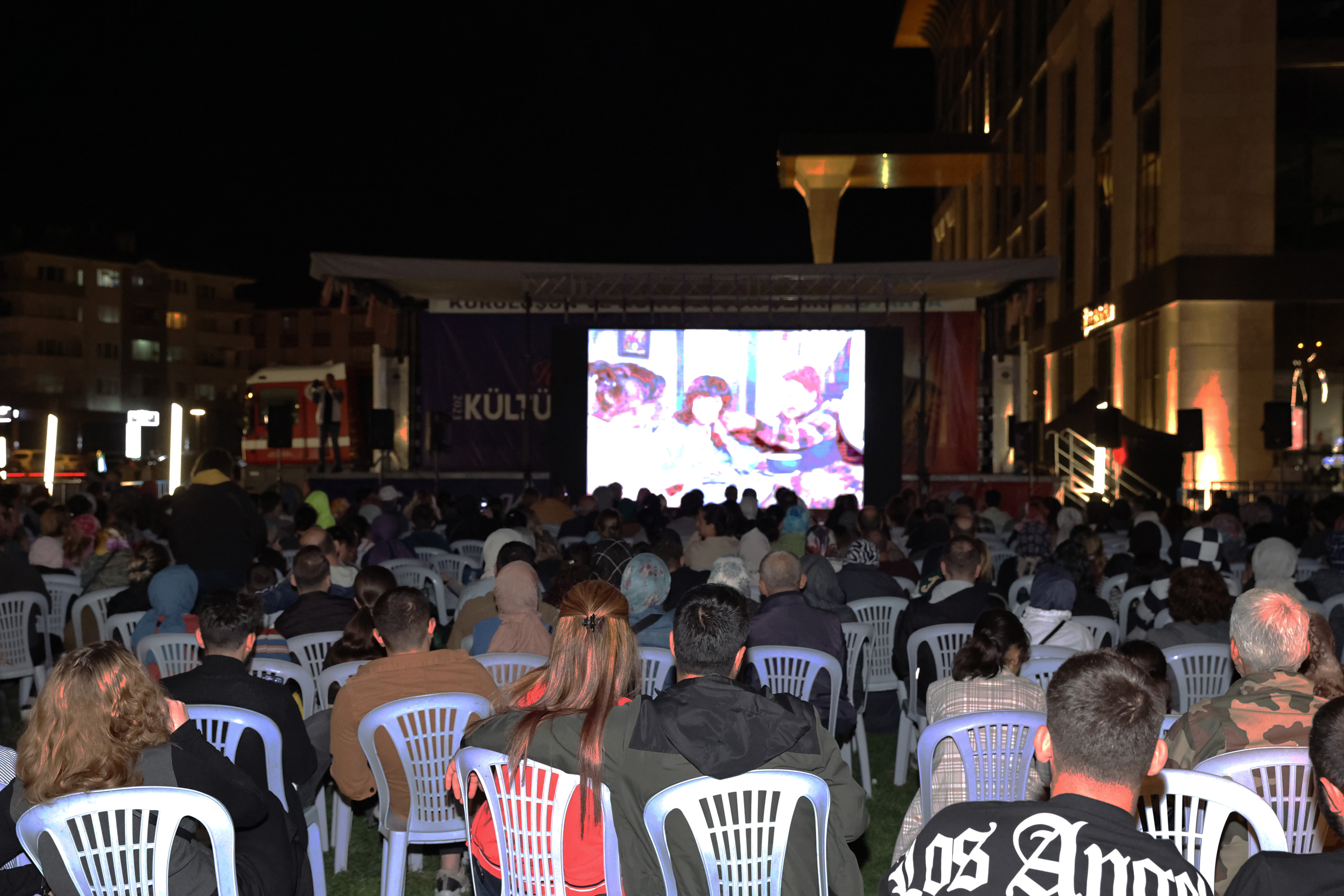 Kütahya Belediyemiz tarafından organize edilen açık hava sinemasında hemşehrilerimiz, belediye bahçesinde kurulan dev ekranda Gülen Gözler filmini ilgiyle izledi. Kütahya Belediyemizin 2023 Yılı Hisarlı Ahmet Kültür Sezonu kapsamında organize edilen ve her 15 günde bir Belediye Hizmet Binası Bahçesinde gerçekleştirilen açık hava sineması etkinliğinde hemşehrilerimize ücretsiz Vazoz ve patlamış mısır ikramı yapıldı.