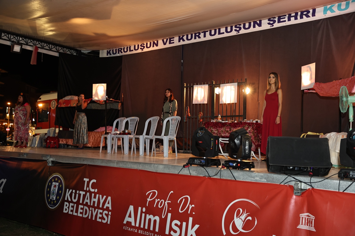 Kütahya Belediyemizin organizasyonuyla belediyemizin bahçesinde kurulan Tır Sahnesi’nde sahnelenen “Kocamı Gömme Töreni” adlı yetişkin tiyatrosu hemşehrilerimizin beğenisine sunuldu.Belediye Başkanımız Prof. Dr. Alim Işık ve İl Jandarma Komutanı Jandarma Kıdemli Albay Murat Kırbaç’ın da seyrettiği oyun öncesi hemşehrilerimize Kütahya Belediyemizin ikramı Vazoz ve patlamış mısır ikram edildi. Kültür ve sanatın başkenti Kütahya’mızda bu alanlara ait etkinliklerin artarak devam ettiğini belirten Başkanımız Işık, oyunu seyretmeye gelen hemşehrilerimize ve tiyatro ekibine teşekkürlerini iletti.