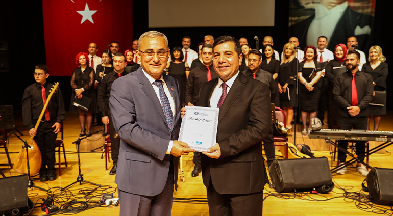 Konser sonunda Belediye Başkanımız Prof. Dr. Alim Işık, Şef Yusuf Ziya Beydüz ve koroya teşekkür belgelerini takdim edip emekleri için şükranlarını sundu.