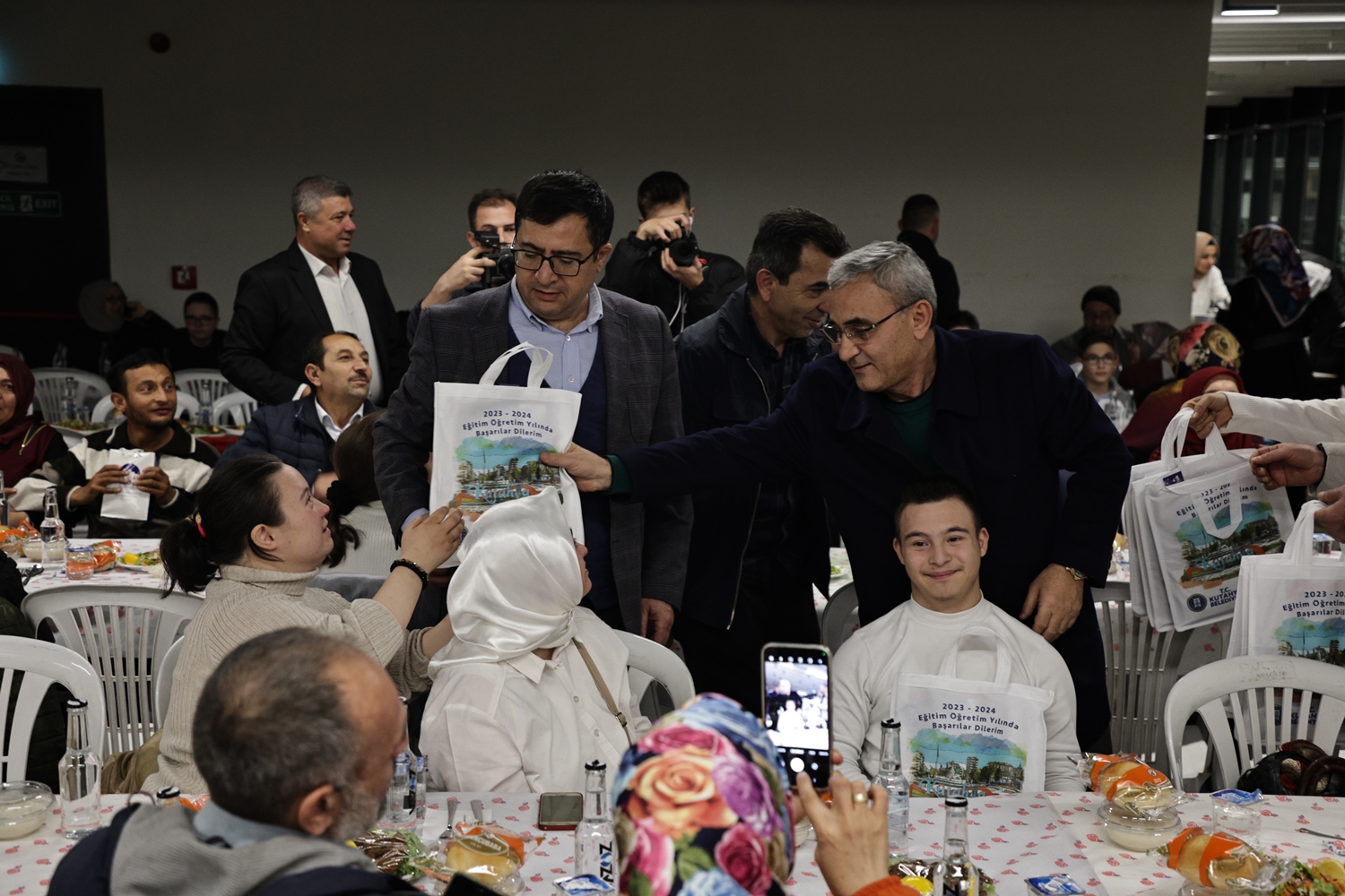 Kütahya Belediye Başkanımız Prof. Dr. Alim Işık, 3 Aralık Dünya Engelliler Günü sebebiyle şehrimizde yaşayan engelli hemşehrilerimizle ve aileleriyle yemekte bir araya geldi. Yemekte konuşan Belediye Başkanımız Prof. Dr. Alim Işık, “Bu özel günde şehrimizin özel ve güzel insanlarıyla bir arada olmanın onuru ve mutluluğu içerisindeyiz” dedi. Engelsiz şehir anlayışıyla çalışan ve bu anlayışla projeleri hayata geçiren Kütahya Belediyemiz, 3 Aralık Dünya Engelliler Günü etkinlikleri kapsamında anlamlı bir organizasyona daha imza attı. Şehrimizde yaşayan engelli hemşehrilerimiz ve ailelerini bir araya getiren bu özel yemekte; Kütahya Vali Vekili Fikret Zaman, Kütahya Hava Er Eğitim Tugay ve Garnizon Komutanı Hava Tuğgeneral Mustafa Baş, Kütahya İl Jandarma Komutanı Jandarma Kıdemli Albay Murat Kırbaç, Kütahya Sağlık Bilimleri Üniversitesi Rektörü Prof. Dr. Ahmet Tekin, MHP Kütahya İl Başkanı Selçuk Alıç, MHP Kütahya Merkez İlçe Başkanı Ayhan Toy, engelli dernekleri ve sivil toplum kuruluşları başkanları ile yöneticileri, Kütahya Belediyemizin birim müdürleri ve bine yakın engelli hemşehrimiz ile aileleri katıldı.