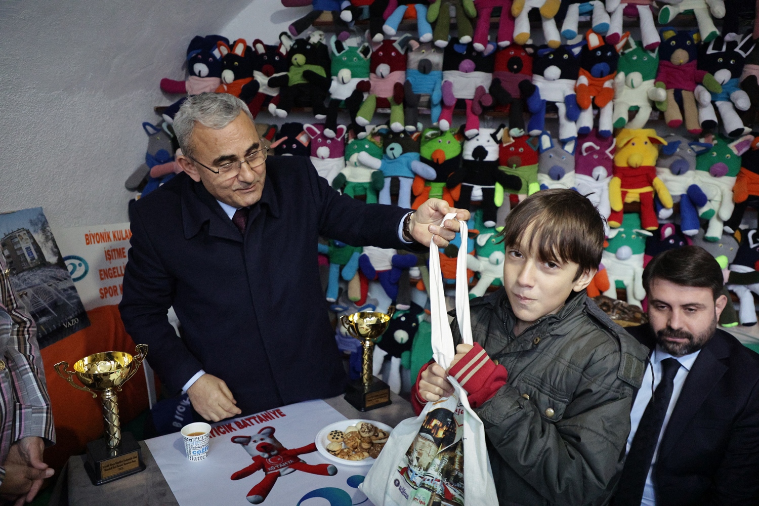 Kütahya Belediye Başkanımız Prof. Dr. Alim Işık, Biyonik Kulaklı İşitme Engelliler Derneği’nin engelli ve engelli yakınlarının sosyal hayata ve istihdama katılımını sağlamak amacıyla ürettiği battaniyelerden Sosyal Yardım İşleri Müdürlüğümüz aracılığıyla 300 adet satın alarak destek olunduğunu belirtti. Şehrimizde engelli ve engelli yakınlarının sosyal hayata ve istihdama katılımını sağlamak amacıyla faaliyetlerini sürdüren Biyonik Kulaklı İşitme Engelliler Derneği’ne Kütahya Belediyemizden anlamlı bir destek geldi. Engelli ve engelli yakınları tarafından üretilen battaniyelerden elde edilen gelirle hem istihdama katkı sağlanıyor hem de işitme engelli hemşehrilerimizin işitme cihazı ihtiyacı karşılanıyor. Üretilen battaniyelerden 300 adet satın alınarak Biyonik Kulaklı İşitme Engelliler Derneği’ne katkı sağlamaktan büyük mutluluk duyduğunu belirten Belediye Başkanımız Prof. Dr. Alim Işık, “Değerli hemşehrilerim, Biyonik Kulaklı İşitme Engelliler Derneğimizin kendilerinin üretmiş olduğu bu özel battaniyeleri Belediyemizin Sosyal Yardım İşleri Müdürlüğü aracılığıyla ihtiyaç sahiplerine dağıtmak üzere bir program tertip edildi. Öncelikle emeği geçen herkese teşekkür ediyorum. Bu battaniyelerin bu hale getirilmesinde emeği geçen tüm dernek üyelerimize ayrı ayrı teşekkür ediyorum. Allah hayırlarını kabul etsin. Bizler de hem derneğimize katkıda bulunmak üzere hem de derneğimizin ürettiği bu battaniyeleri ekonomik olarak değerlendirip derneğimizin büyümesine katkımız olsun diye aldık. Derneğimizin ürettiği 300 adet battaniyeyi alarak değerlendireceğiz. Battaniyelerimiz de özel. Kütahya’mızın markası Belediye Kütahyaspor’umuzun renklerinde. Onun için de ayrıca teşekkür ediyorum. Hayırlı ve uğurlu olsun” ifadelerini kullandı.