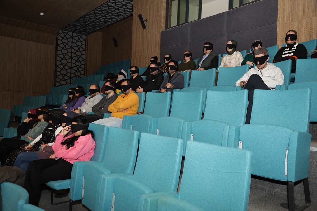 Etkinlik sonunda gözlerini kapatan katılımcılar, Kayıp Şeyler Dükkanı isimli radyo tiyatrosunu sesli betimlemeyle dinledi.