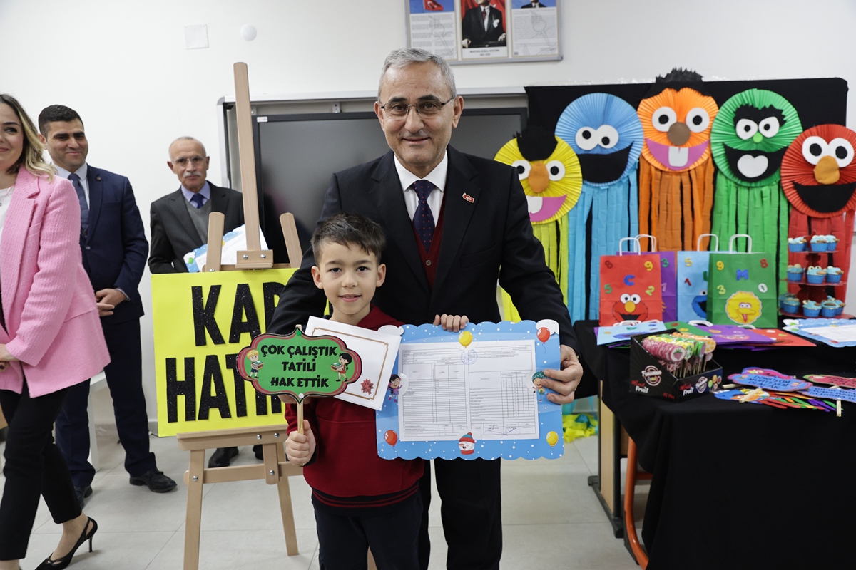2023-2024 eğitim öğretim yılının birinci döneminin sona ermesiyle tüm yurtta olduğu gibi şehrimizde de karne heyecanı yaşandı. Miniklerin karne heyecanına ortak olan Belediye Başkanımız Prof. Dr. Alim Işık, öğrencilere iyi tatiller diledi.11 Eylül 2023'de başlayan 2023-2024 eğitim öğretim yılının birinci dönemi bugün itibariyle sona erdi. Tüm yurtta olduğu gibi şehrimizde de öğrenciler karne heyecanı yaşadı. 75. Yıl Mahallesi’ndeki Atakent İlköğretim Okulu’nu ziyaret ederek miniklerin heyecanına ortak olan Belediye Başkanımız Prof. Dr. Alim Işık, öğrencilere karnelerini takdim etti. Karnelerini Başkanımız Işık ve il protokolünden alan öğrenciler, 5 Şubat’ta başlayacak ikinci döneme kadar tatilin tadını çıkaracak.