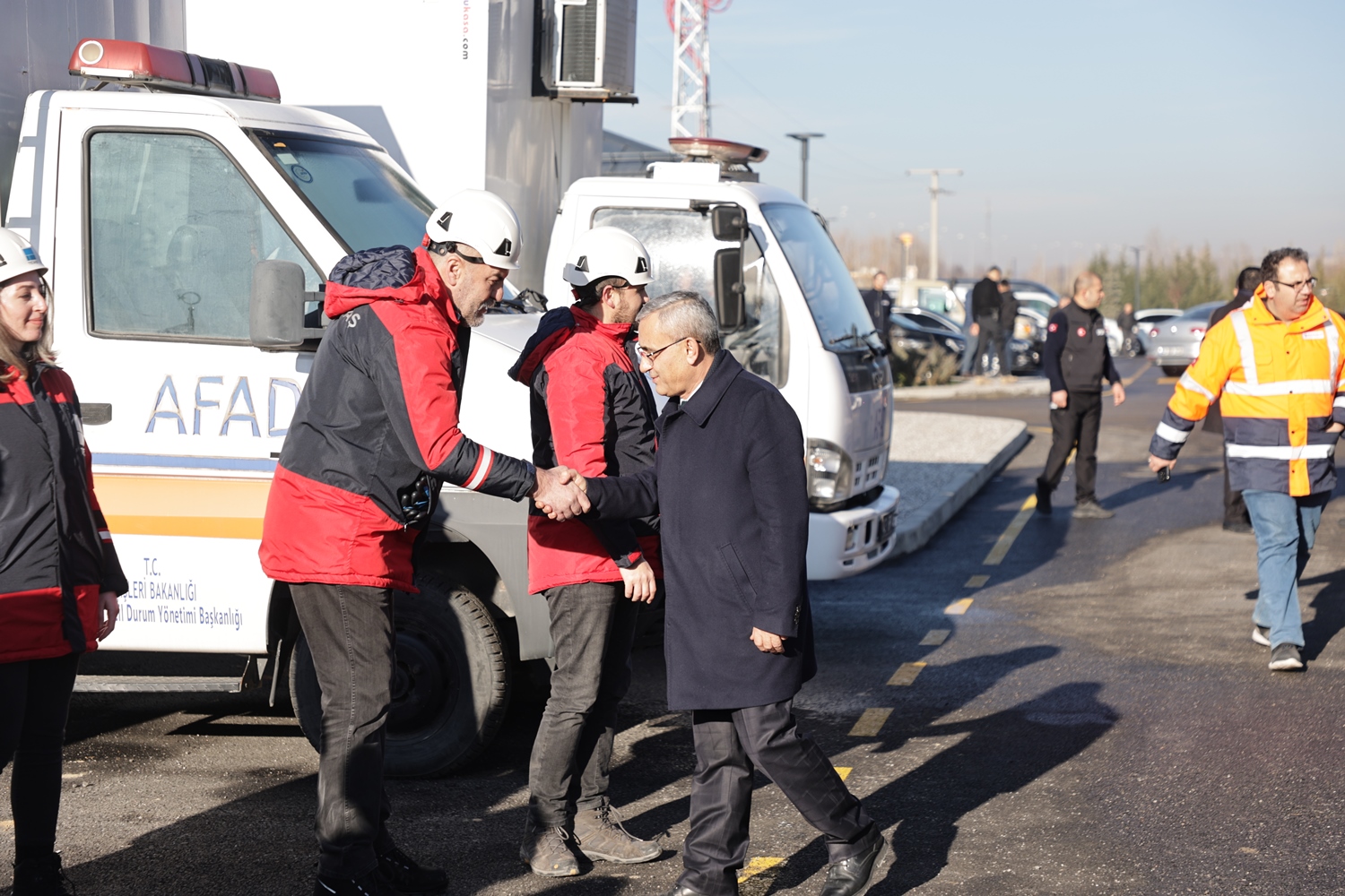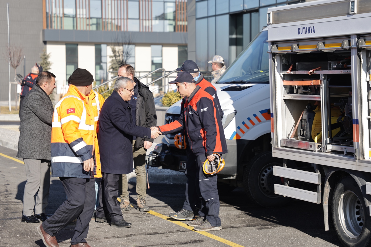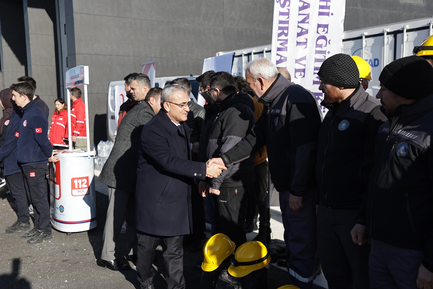 Belediye Başkanımız Prof. Dr. Alim Işık, Kütahya İl Afet ve Acil Durum Müdürlüğü’nün düzenlediği 6 Şubat Depremleri Anma Programına katıldı. Kahramanmaraş merkezli 6 Şubat depremlerinin 1. yılı nedeniyle Kütahya İl Afet ve Acil Durum Müdürlüğü’nde (AFAD) anma programı düzenlendi. Anma programı öncesinde şehrimizdeki kamu kurum ve kuruluşları ile özel sektörlerin oluşturduğu arama kurtarma ekiplerini ziyaret eden Başkanımız Işık, ekiplere özverili çalışmalarından dolayı teşekkür ederek kandillerini kutladı. Daha sonra Kütahya İl Afet ve Acil Durum Müdürlüğü bahçesinde oluşturulan sergiyi gezen Başkanımız Işık, AFAD İl Müdürü Nurettin Havutçu’dan sergideki fotoğraflar ve yapılan çalışmalarla ilgili bilgi aldı.