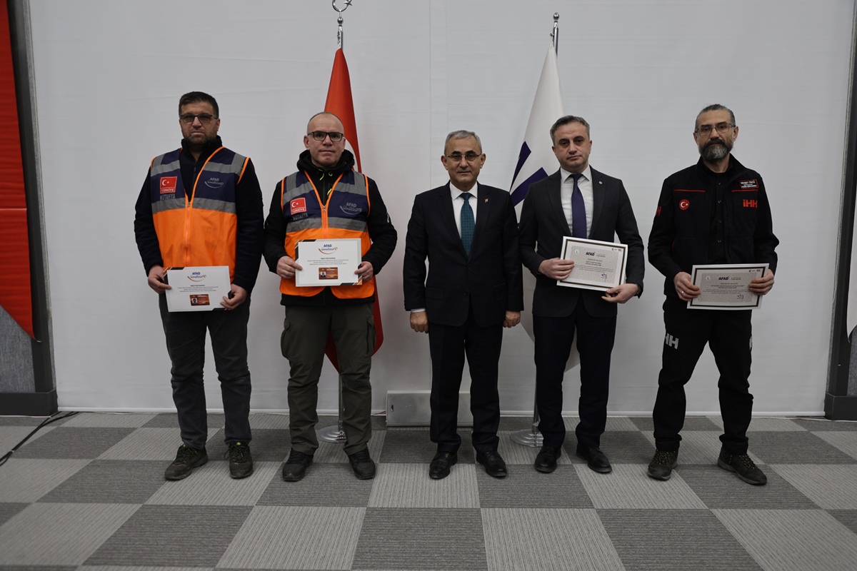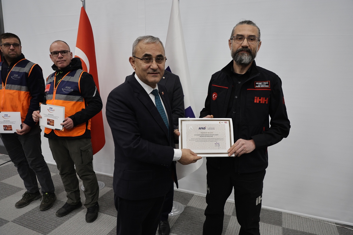 Anma programının sonunda başarılı olan arama kurtarma görevlilerine teşekkür belgeleri ve kimlik kartları Belediye Başkanımız Prof. Dr. Alim Işık ve il protokolü tarafından verildi.