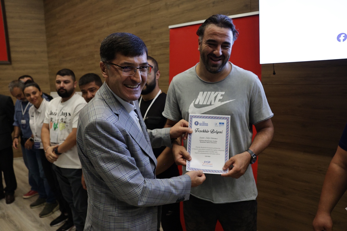 Belediye Başkanımız Kahveci gençlerimizin sağlığının her şeyden önemli olduğunu belirterek, Kütahya Belediyespor Kulübü’müzde 17 farklı branşta, 1700’den fazla lisanslı sporcumuz için emek veren antrenörlere teşekkür belgelerini takdim etti.
