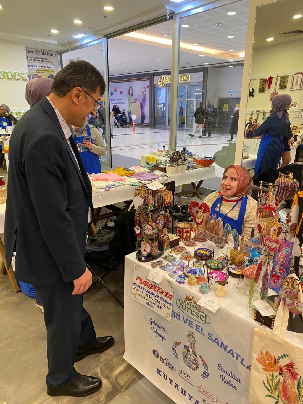 Kütahya Belediye Başkanımız Eyüp Kahveci, Kütahya Sera AVM’de her hafta Cumartesi ve Pazar günleri açılan Kütahya Yöresel Lezzetler ve El Sanatları stantlarını ziyaret ederek üreticilerimizle bir araya geldi.Stantları tek tek gezerek üreticilerimizle sohbet eden Belediye Başkanımız Eyüp Kahveci, el emeği ürünler ve yöresel lezzetler hakkında bilgi aldı, vatandaşlarımızla da sohbetler gerçekleştirdi.