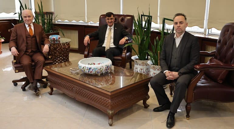 Kütahya Belediye Başkanımız Eyüp Kahveci, şehrimizin önemli sanayi kuruluşlarından biri olan Güral Porselen’e ziyarette bulunarak, Yönetim Kurulu Başkanı İsmet Güral ve Yönetim Kurulu Üyesi Ali Güral ile bir araya geldi.Görüşmede, Kütahya’mızın sanayi potansiyeli, üretim gücü, istihdama katkı sağlayan yatırımlar ve şehrimizin ekonomik gelişimine yönelik değerlendirmelerde bulunuldu. Şehrimizin köklü üretim kültürünün önemli temsilcilerinden biri olan Güral Porselen’in şehrimize sunduğu katkılar da ele alındı.