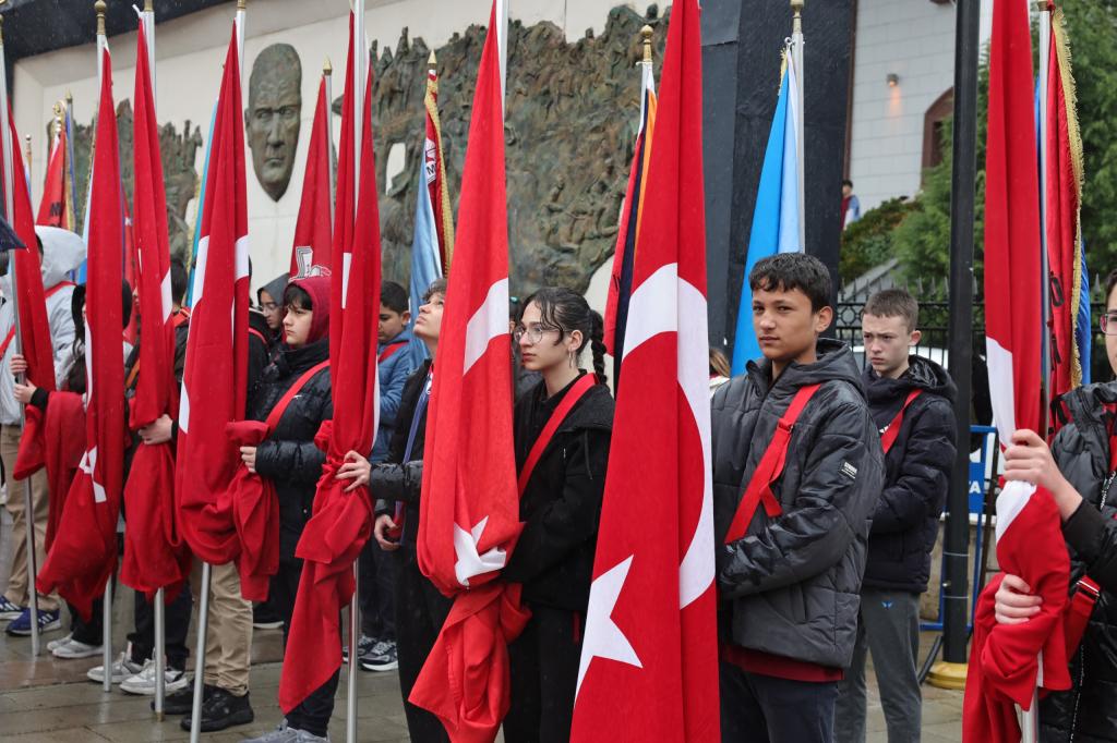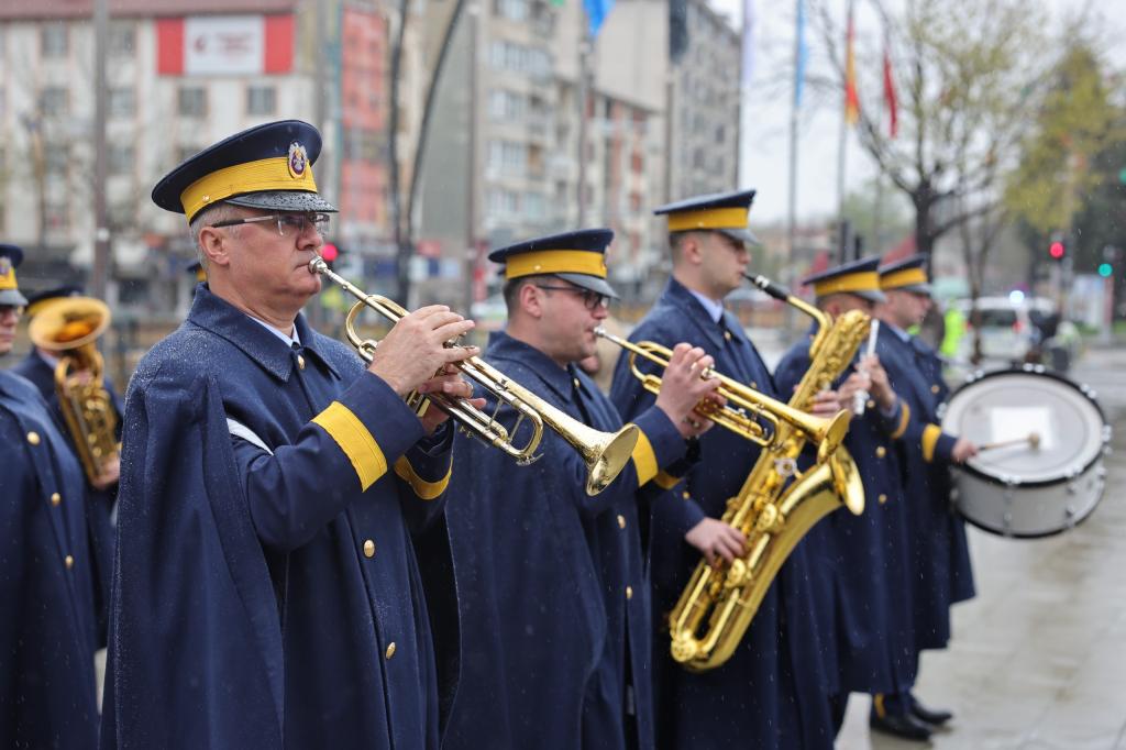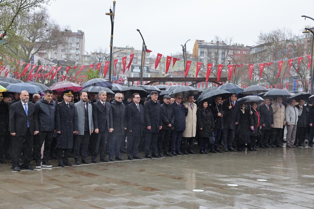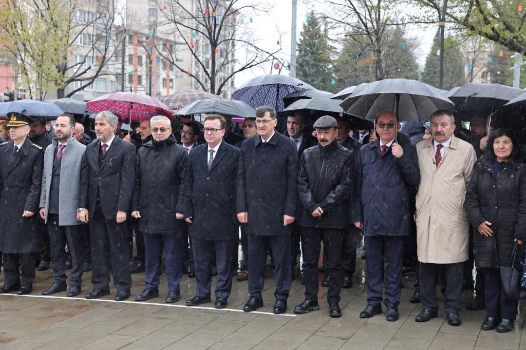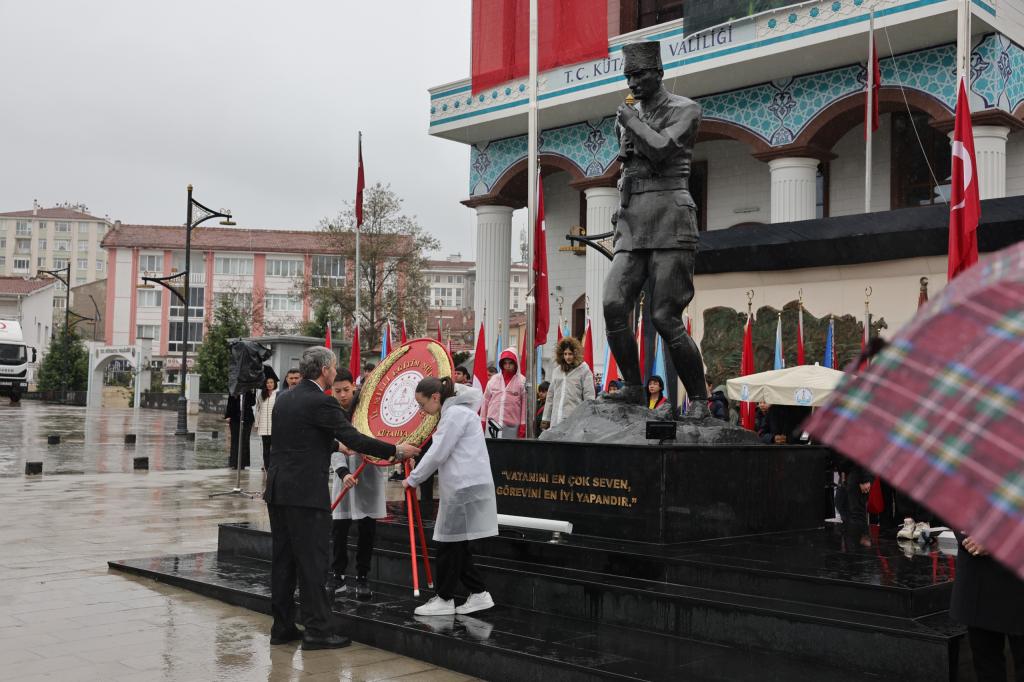Tören, İl Milli Eğitim Müdürlüğü çelenginin Atatürk Anıtı’na sunulması, saygı duruşunda bulunulması ve İstiklal Marşı’nın okunmasıyla başladı ve Tugay Bandosu performansı ile devam etti.
