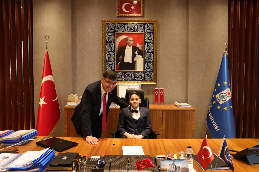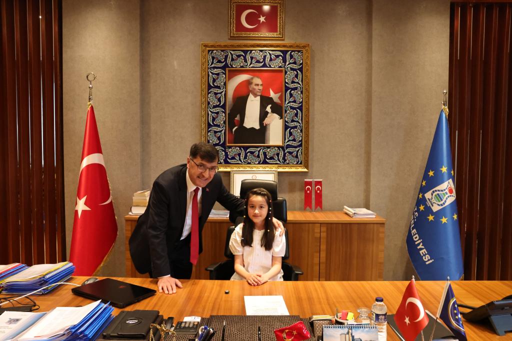 Belediye Başkanımız Eyüp Kahveci, çocuklarımızla yakından ilgilenerek onların düşüncelerini dikkatle dinledi. Temsili olarak görevi devralan Elif Naz Yıldırım ve Emin Onur Yıldırım, şehrimize dair hayallerini, hedeflerini ve geleceğe yönelik umutlarını dile getirdi.