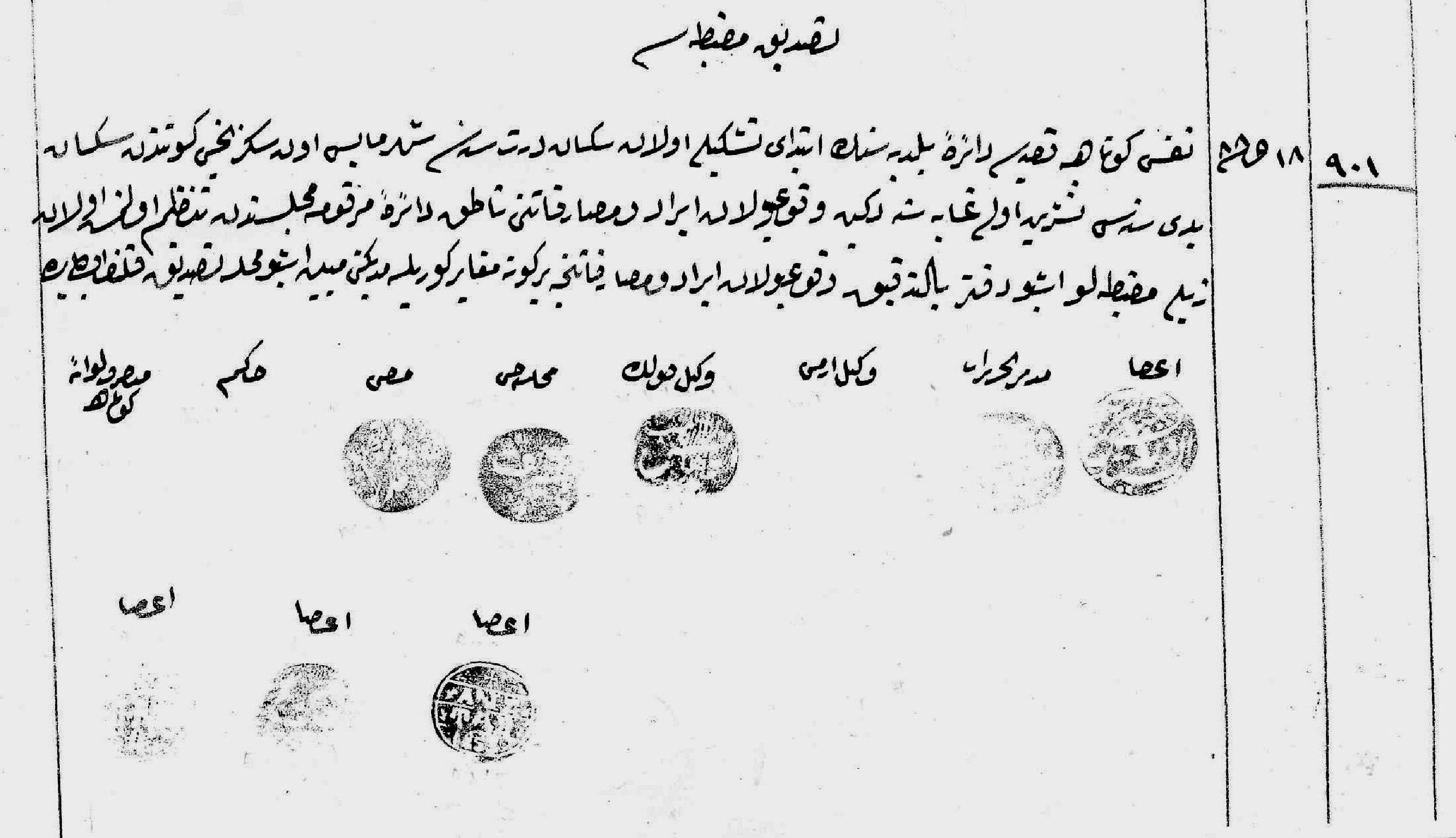 901 Hicri 18 Zilhicce 1288 Tasdik Zabtı (Miladi: 27 şubat 1872)